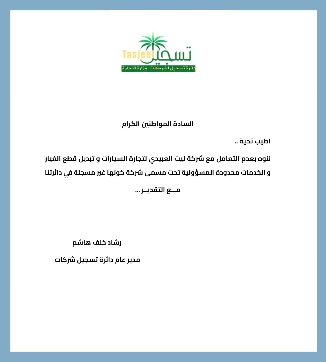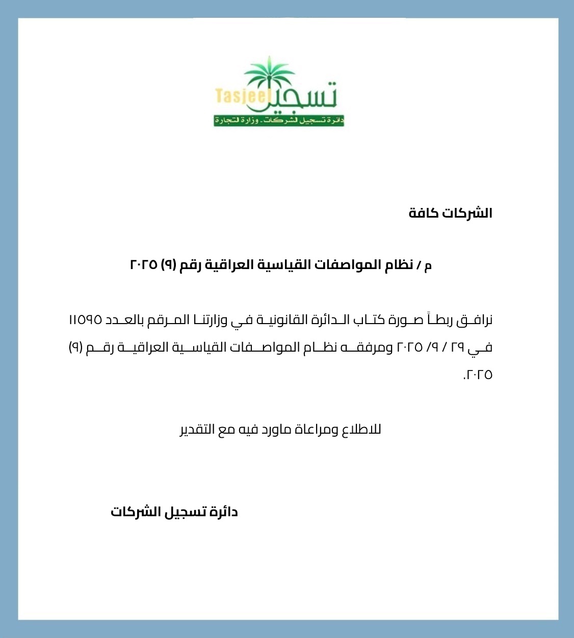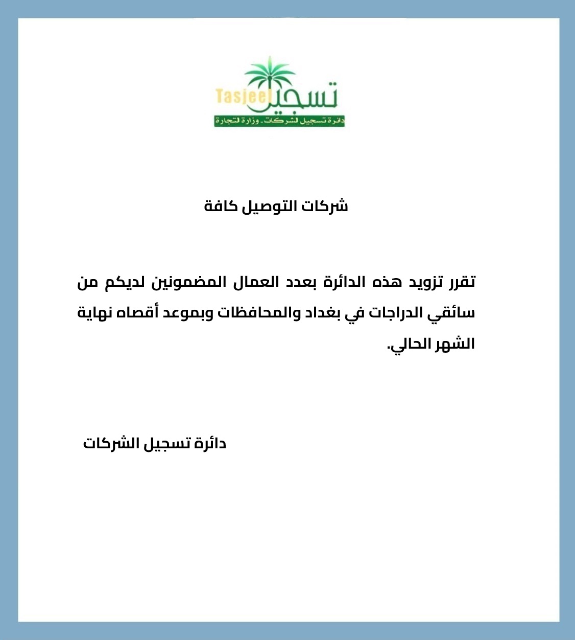 على مواقع التواصل جميع الحقوق محفوظة© لدائرة تسجيل الشركات-2024 عن الدائرة: دائرة تسجيل الشركات من اهم الدوائر في وزارة التجارة المختصة بتسجيل ومتابعة الشركات العراقية والاجنبية و مقرها في بغداد المنصور- شارع دمشق