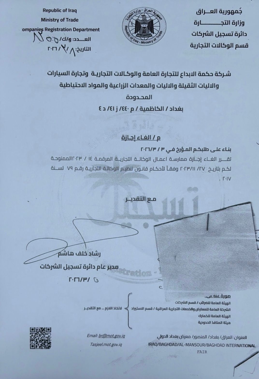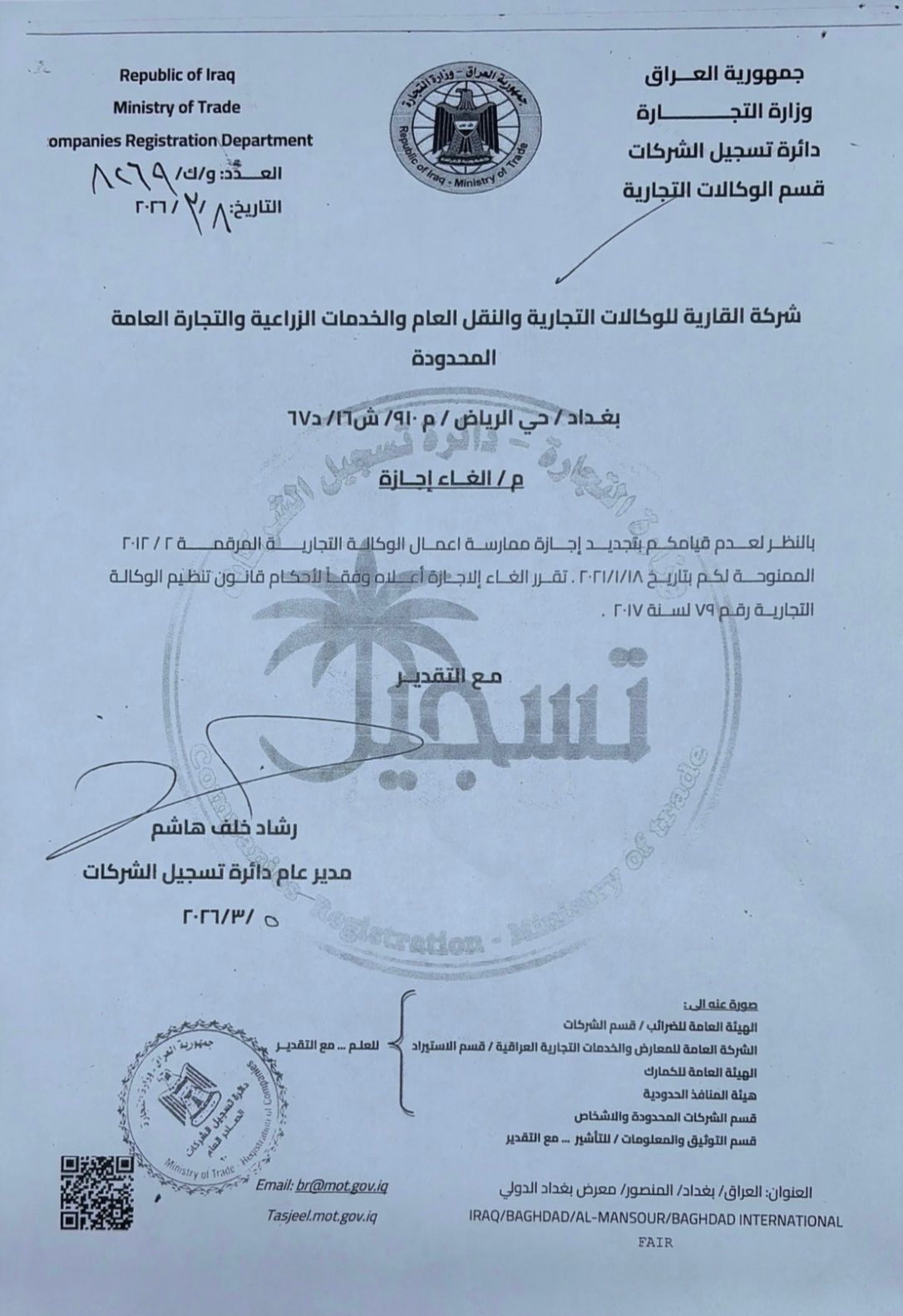 شركة القاصد للوكالات التجارية و تجارة الأدوات الاحتياطية و السيارات و خدمات ما بعد البيع و التجارة العامة المحدودة